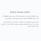 - ویژگی محصول : قابلیت اتصال به شبکه 4G با سرعت حداکثر 150 مگابیت بر ثانیه امکان اتصال دستگاههای مختلف از طریق کابل و وایفای دارای چهار آنتن قدرتمند جهت افزایش سیگنال و پوشش بیسیم دارای چهار پورت شبکه از نوع 10/100 LAN بهرهمندی از شبکه بیسیم قدرتمند با سرعت 300 مگابیت بر ثانیه سازگار با کلیه شرکتهای ارائه دهنده اینترنت همراه پشتیبانی از فرکانسهای TD/LTE Band 38/40/41