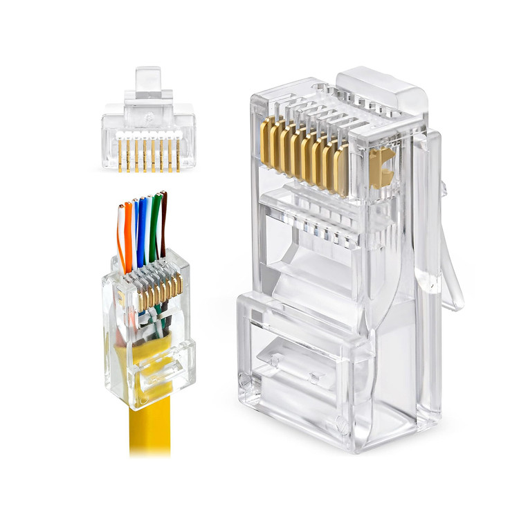 چاره حل این مشکل استفاده ازسوکتهای جدیدی است که آنها را با نام سوکت شبکه میان گذر، سوکت شبکه ته باز و سوکت شبکه سوراخ دار میشناسند. این دسته از سوکت های کاربردی را به وفور در اتصال انواع شبکه های کابلی و تجهیزات مخابراتی مورد استفاده قرار می دهند. کانکتور مذکور کابل های شبکه را به تجهیزات الکترونیکی موجود در شبکه نظیر کامپیوتر، سوئیچ، روتر و… وصل می کند. لازم به ذکر است که این نوع کانکتورها را با در نظر گرفتن نوع و جنس آن ها برای سوکت زنی کابل های مختلف اعم از Cat5 و Cat6 مورد استفاده قرار می دهند. این موضوع موجب شده که اهالی شبکه آن ها را تحت عنوان سوکت Cat5 و Cat6 بشناسند.